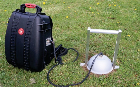 该检测仪适用于现场, 如田地,森林,垃圾填埋场和其他区域。该设备通过蓝牙连接到平板电脑。