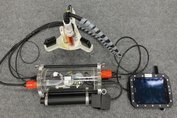 CISME便携式潜水呼吸系统用于原位检测珊瑚和其它底栖基质的代谢率。这个名字来源于珊瑚原位代谢,并发音为“kiss-me”,以反映仪器与珊瑚之间的温和互动。 CISME在短时间孵化期间测量氧气通量和pH,其中水流量和光照水平由操作人员控制。从这些浓度变化计算呼吸(R)和光合作用(P)。样品环提供水样,可以滴定总碱度(TA)以测量钙化率(CA)。可以基于O2和CO2通量计算R和P,从中可以计算RQ和PQ。样品环也可用于实验性地引入可能影响珊瑚代谢的物质(例如用于OA研究的酸化海水)。