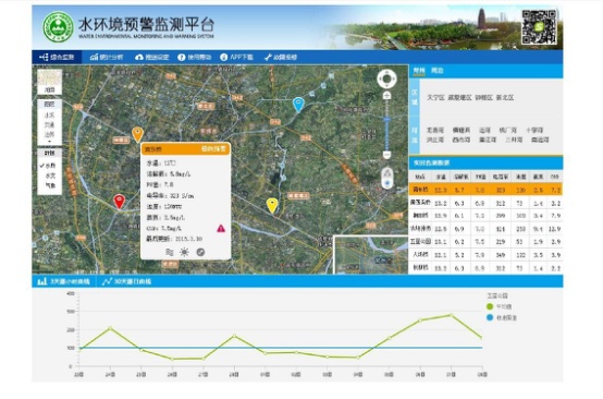 综合监测页面中,选中监测点后下方即显示该点3天逐小时、30天逐日各项监测指标的平均、**、*低数据,辅助用户分析水质状态。